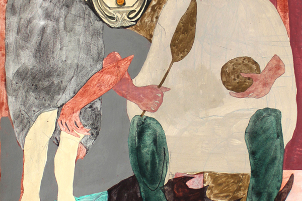 I think the most fascinating thing about my process is realising a character or an outfit. The potential in images is so exciting because I always have another character in my head that I need to realise through a picture. My figures are curious, and the costumes and settings are kind of bizarre. I’ll see some red stockings and then paint a face to match. Sometimes I work from a photograph that I like, or that I’ve found online. I tend to work a lot from reproductions and keep an archive of these in my studio, so I can reference them regularly. The potential in an image is what fascinates me most.